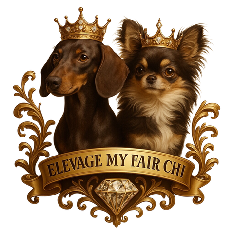 Bienvenue sur le site internet du palace My fair chi qui est constitué de deux races (Chihuahua et le teckel nain. Je suis depuis le plus jeune âge une passionnée inconditionnelle de Chihuahua car j’aime tout chez eux, leur caractère vif et amoureux, leur petite taille, leur ténacité et leur sensibilité. J’ai toujours eu un faible pour les races de petits gabarits et cela fait donc maintenant plusieurs années que j'ai commencé à reproduire ses petites merveilles dans le but de dessiner ma propre lignée sous l'affixe My fair chi reconnu à la SRSH.